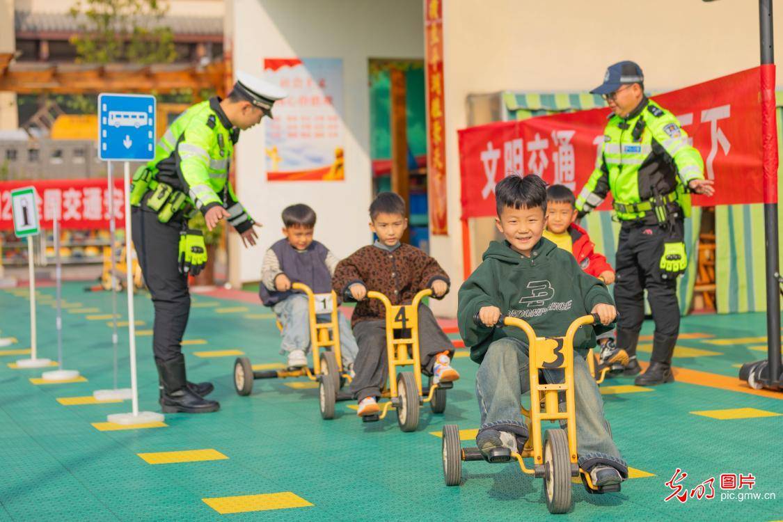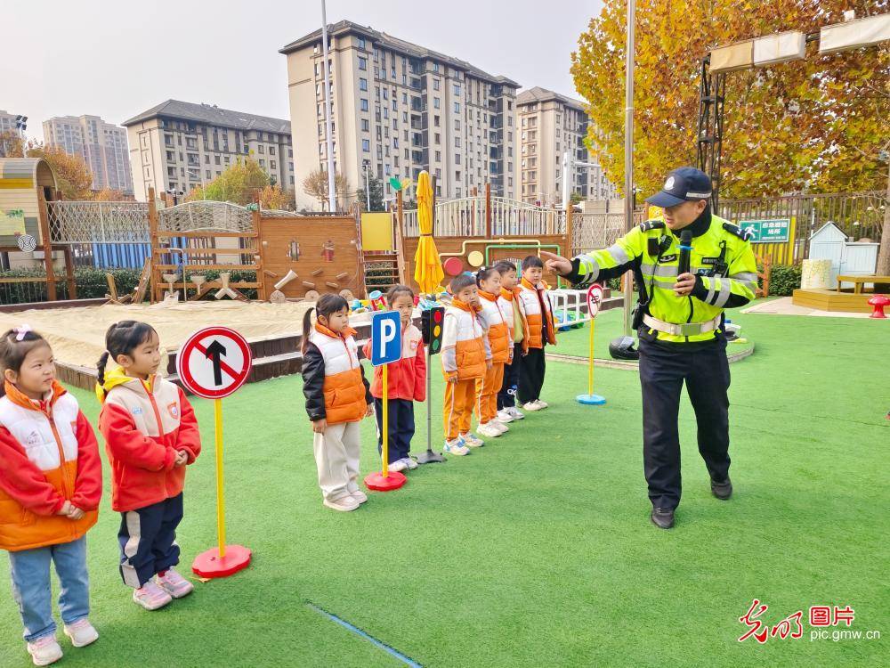 2025年12月2日,安徽省合肥市交通办理支队蜀山大队走进辖区长儿园,为孩子们上了一堂趣味活泼的交通平安体验课,向小伴侣引见常见的交通标识。(陈三虎摄/图片)?。